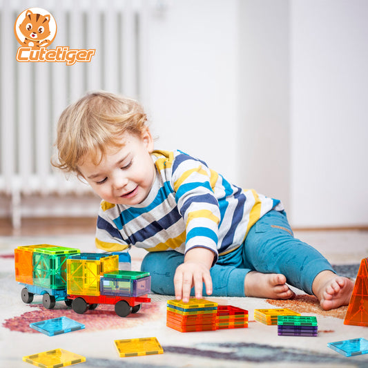 CuteTiger Magnetic Tiles, Magnet Tiles, Magnetic Building Blocks, Square Building Castle, Preschool Toys, STEM Stacking Construction Toys for Boys Girls 3 Years up
