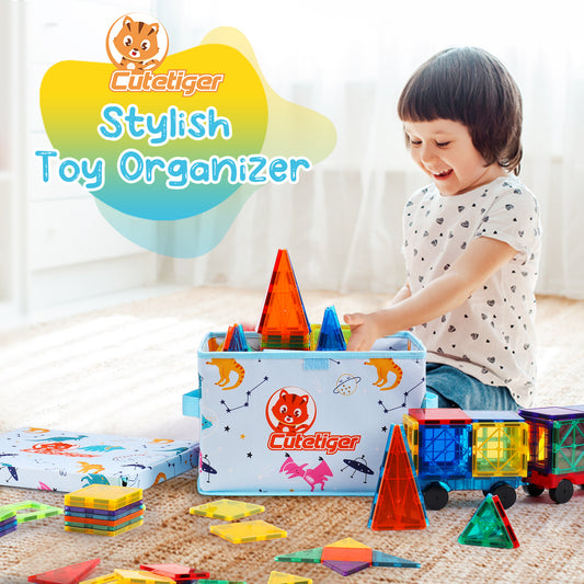 CuteTiger Storage Bin,Toy Organizer Bag, Playroom Organizer Box, Magnetic Tiles and Doll Storage Container,Toy Holder with Lid, Foldable